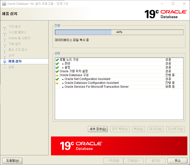 단, 54%에서 아무리 기다려도 더이상 진행이 안된다면.. 설치가 멈춘 것이니 중단하고 오라클 삭제 후