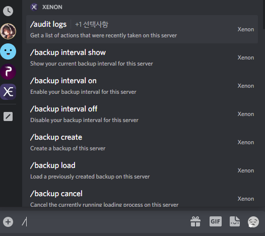 사진과 같이 슬래시 커멘드를 입력하면 사용가능한 명령어의 목록이 나오고, 클릭하면 해당 명령어를