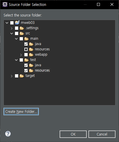 폴더가 잘 추가된 것을 확인하고, test폴더 설정을 해준다.