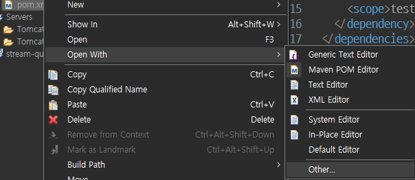 pom.xml파일을 수정할 때와 동일하게 vscode에서 작성하는 것이 수월하다.