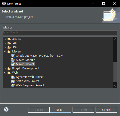 New - Project - Maven - Maven Project 선택 후 Next 클릭