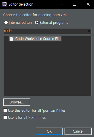External programs에서 code를 검색해 vsCode에서 수정한다.