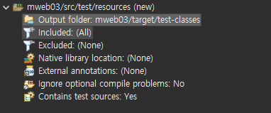 맨 마지막 Contains test sources를 Yes로 바꿔주고(더블클릭하면 바뀐다.),