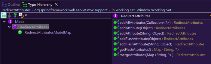 RedirectAttributes는 Model인터페이스를 상속받고 있고, 속성을 올려둘 수 있는 메소드를 제공하고 있습니다.