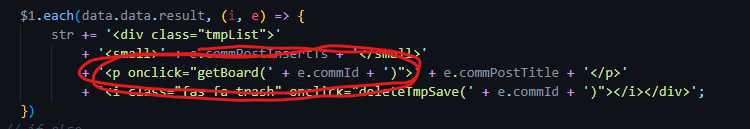 이 함수를 임시저장 리스트의 제목부분에 onclick 이벤트로 걸어주었습니다.