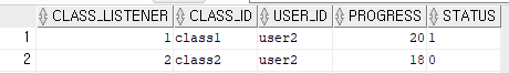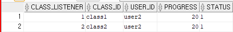 <update id="updateStatus"> UPDATE t_class_listenr SET status = 1 WHERE class_id = #{classId} AND status = 0 AND progress >= ( SELECT class_count FROM t_class WHERE class_id = #{classId} ) </update>종료여부를 업데이트하는 쿼리입니다. progress가 지정된 class_count보다 같거나 커지는 순간 status를 1(종료됨)로 업데이트 합니다.
