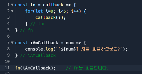 두 번째 iAmCallback 함수는 매개변수를 콘솔에 출력하는 함수입니다.