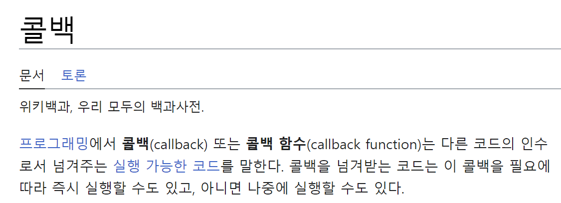 이 매개변수로 전달되는 함수를 콜백 함수라고 합니다.