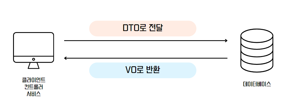 제가 협업을 했을 때에는 클라이언트 -> DB로 데이터를 전송할 때에는 DTO를 사용하고, DB에서 반환되는 데이터 타입은 VO를 사용하기로 약속했습니다.